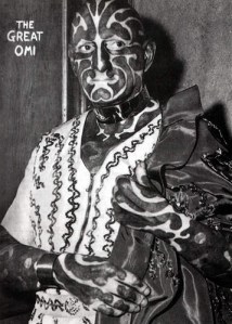 To add entertainment value, Ridler created an elaborate explanation for his tattoos saying he was captured and tortured by natives in New Guinea. His wife Gladys, who changed her name to Omette, got in on the act by describing Omi’s African ordeal as she introduced him.